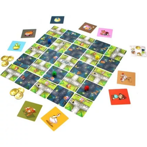 Tartalma: 35 nagyméretű kártya, 4 játékosfigura, 6 karton érme, szabálykönyv.