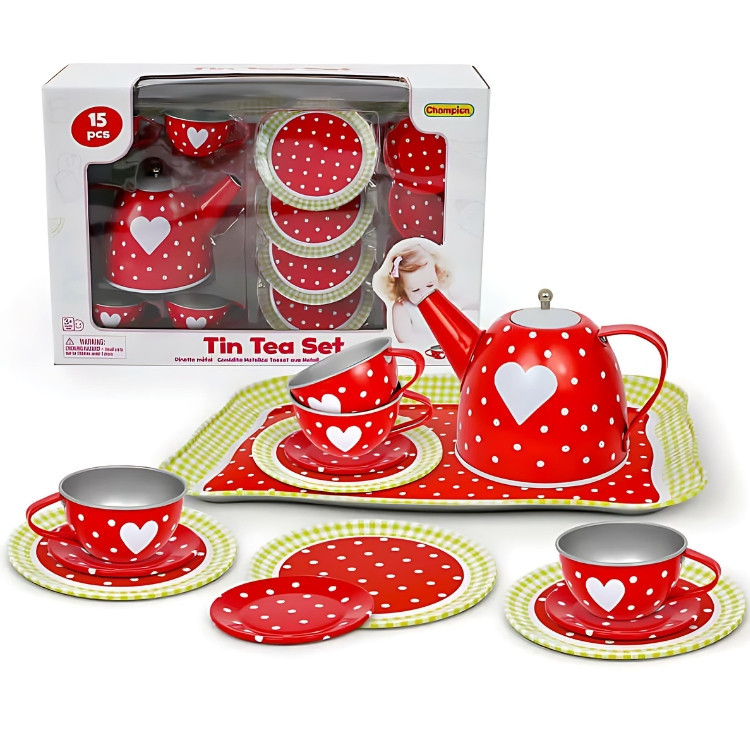 Anyaga: fém Tálca mérete: 24,5 x 1,5 x 6,5 Kistányér átmérője: 6 cm Nagytányér átmérője: 9 cm Csésze átmérője: 5 cm Kanna mérete: 11,5 x 8,5 x 8,5