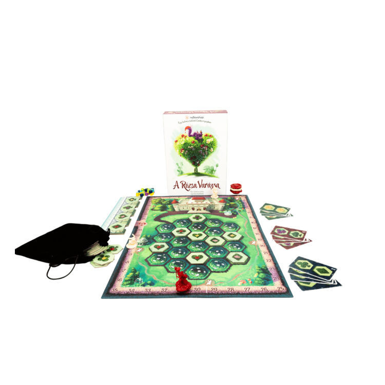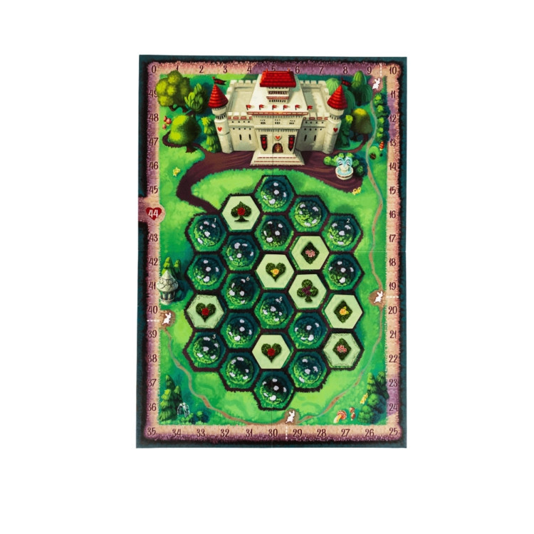 Doboz tartalma: 1 kertészek figura 1 szív királynő 4 virágjelölő 1 fehér nyuszi szeszélykártyák 30 nyomjelölő (játékosonként 6) 3 jegyzettömb 1 királyi napló