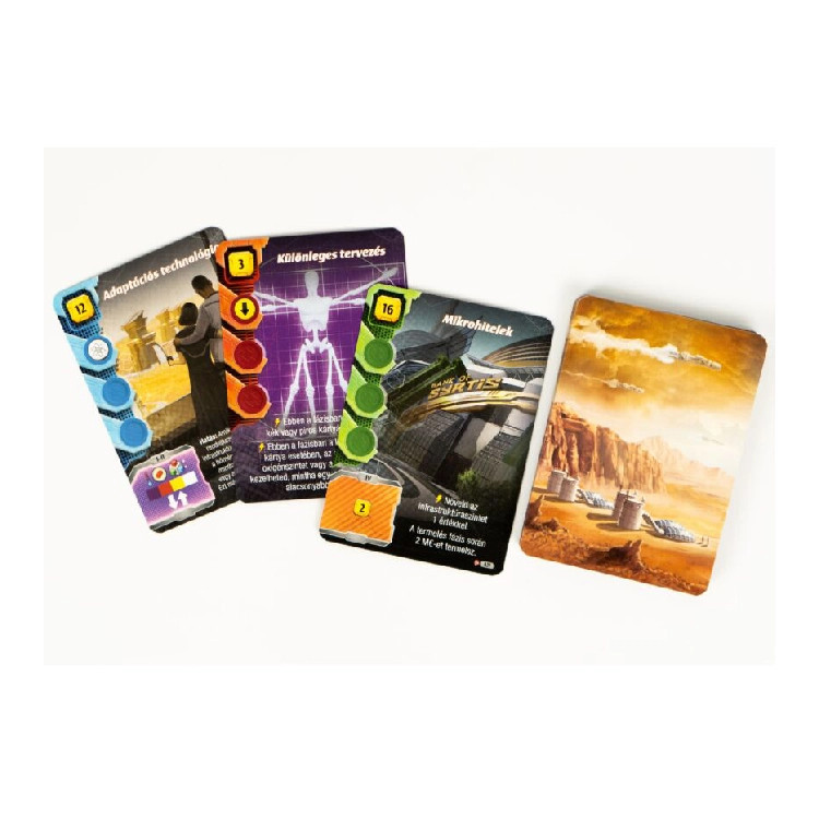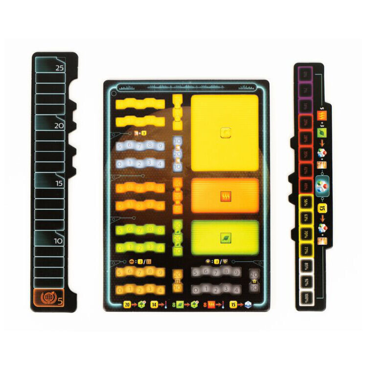 Doboz tartalma: 1 kiegészítő pontozótábla 1 infrastruktúrasáv 10 fáziskártya 20 fejlesztett fáziskártya 22 projektkártya 1 cégbirodalom-kártya 1 kártyaelválasztó 2 játékossegédlet 1 áttetsző kocka az infrastruktúraszint jelölésére 13 fekete játékoskocka 13 fehér játékoskocka 50 rézkocka 12 ezüstkocka 12 aranykocka