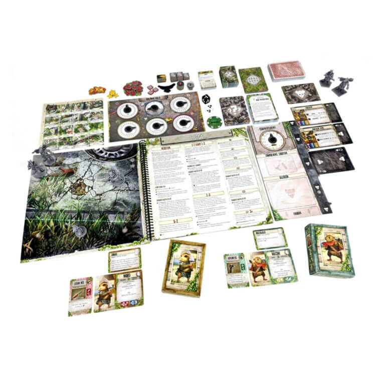 Doboz tartalma:- 23 műanyag figura- 2 dobókocka- 1 kiegészítő tábla- 1 kolónia tábla- 1 térkép- 162 normál méretű kártya- 88 kis méretű kártya- 88 jelölő- 7 kartonfigura- 7 kártyatartó doboz- 1 kalandkönyv- 1 szabálykönyv