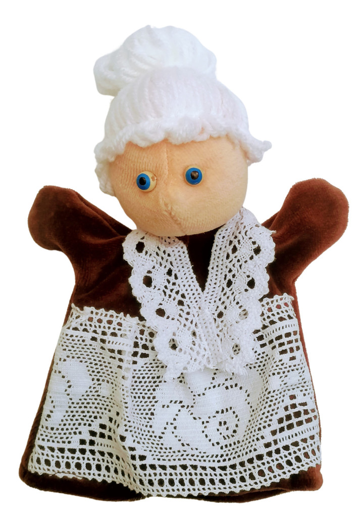 Háromujjas, puha textil anyagból készült báb.