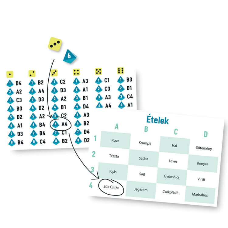 Tartalom: - 1 üres letörölhető tématábla - 1 filctoll - 1 db 6 oldalú dobókocka - 1 db 8 oldalú dobókocka - témakártyák - kék, illetve zöld kódkártyák - 1-1 kaméleon - Magyar játékszabály Big Potate - Kaméleon társasjátékról bővebben:
