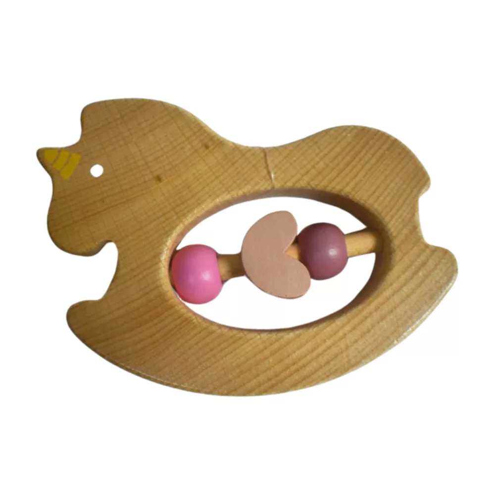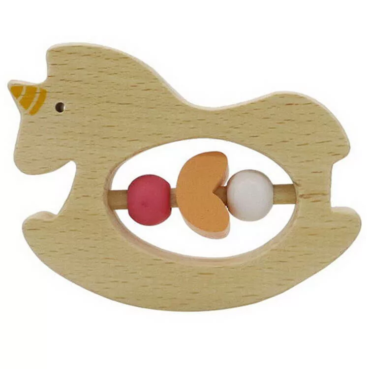 Minőségi fából készült natúr unikornis formájú csörgő.