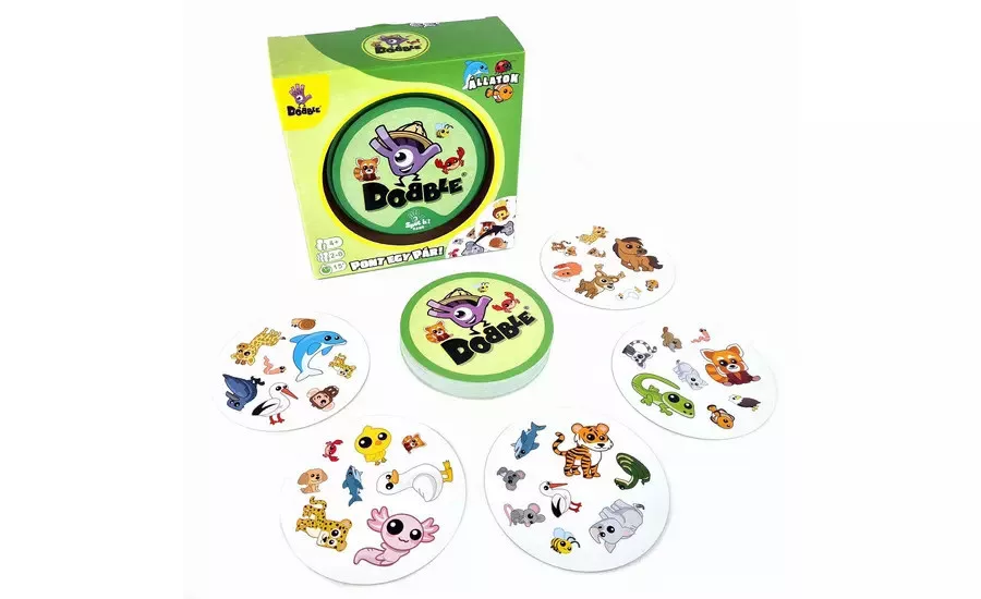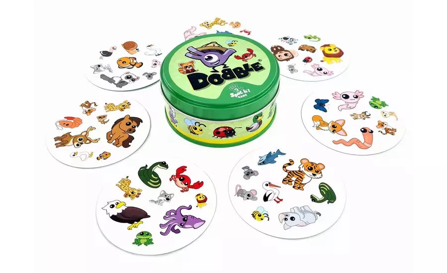 A Dobble Animals pörgős, zsebre vágható kártyajáték 5-féle játékváltozattal.