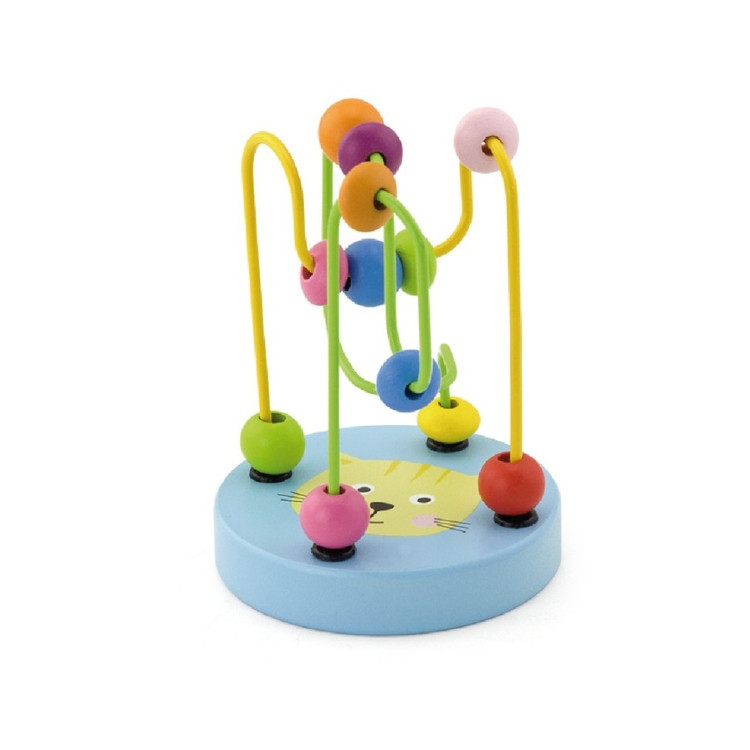 Fából készült színes golyóvezető aranyos kis cicafejjel a talpazatán. Méltán népszerű játék, mivel számos területen fejleszti a kisgyermekeket.