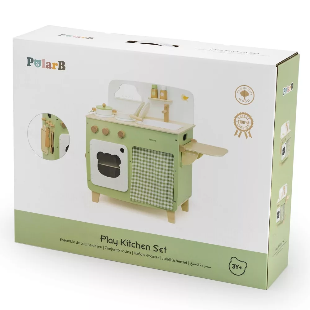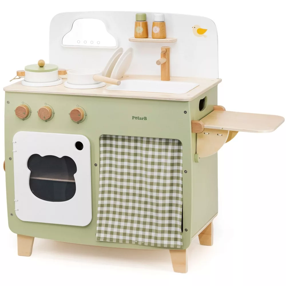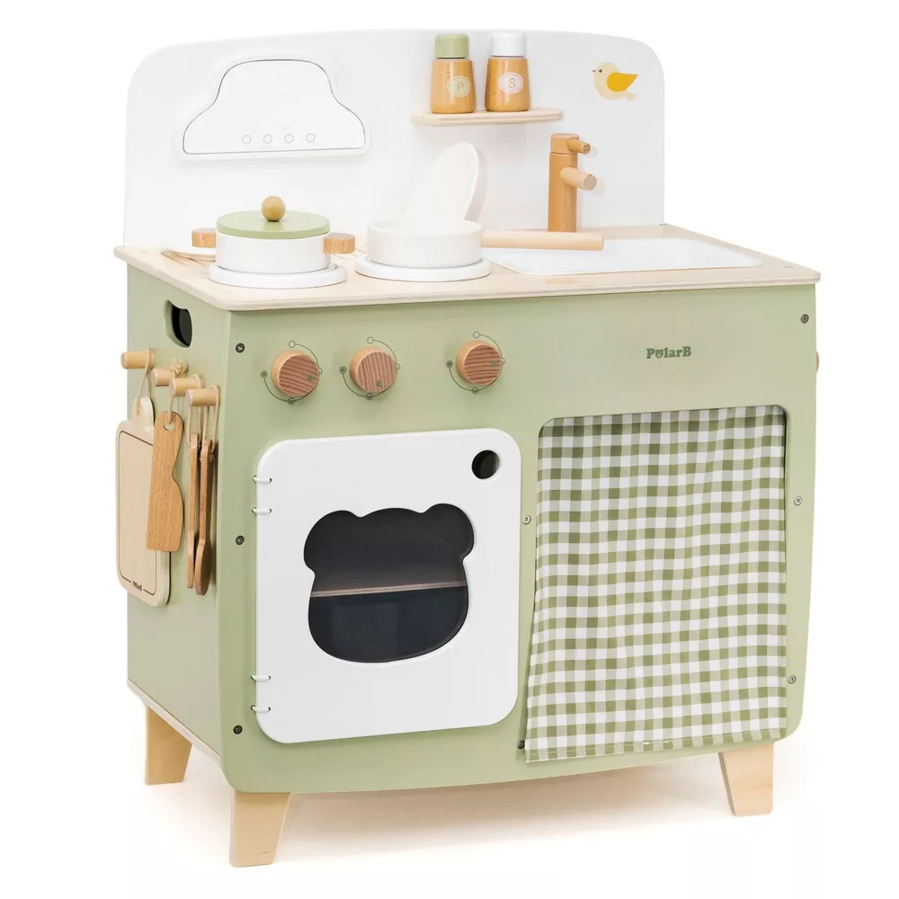 Játékkonyha eszközökkel fából: zöld (PolarB)