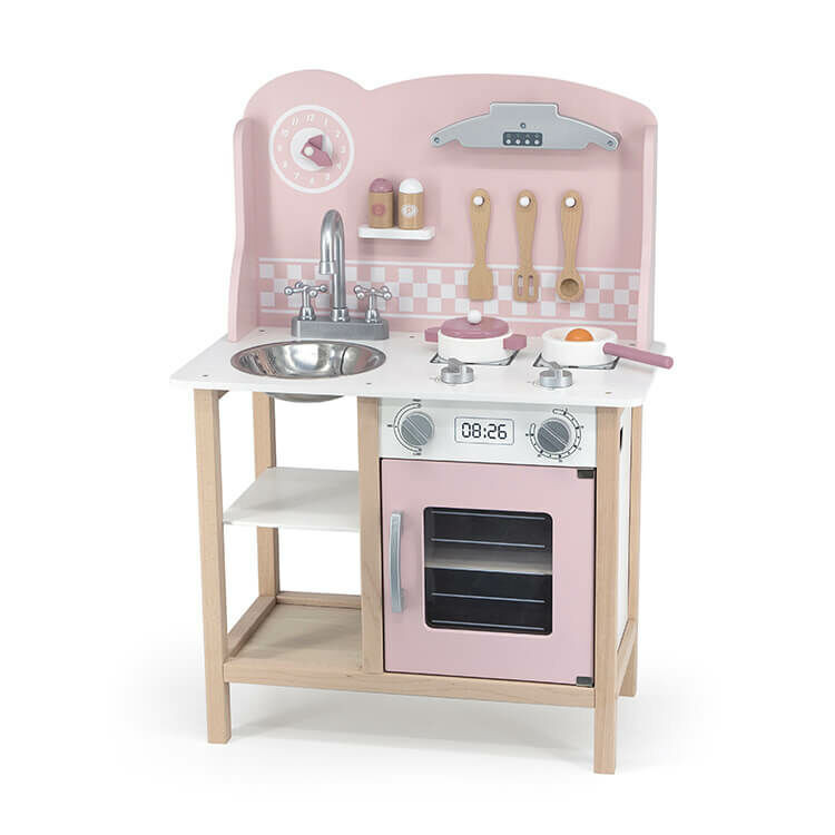 Játékkonyha fából: rózsaszín (PolarB)