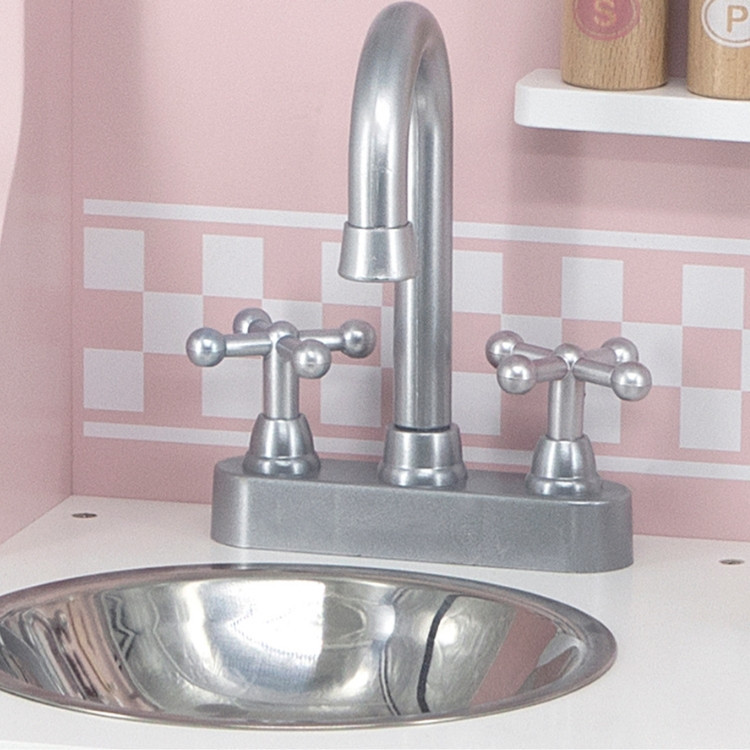 PolarB rózsaszín-fehér játékkonyha sütővel, páraelszívóval és mosogatóval a Viga Toys-tól. Kezdődhet a sütés-főzés.