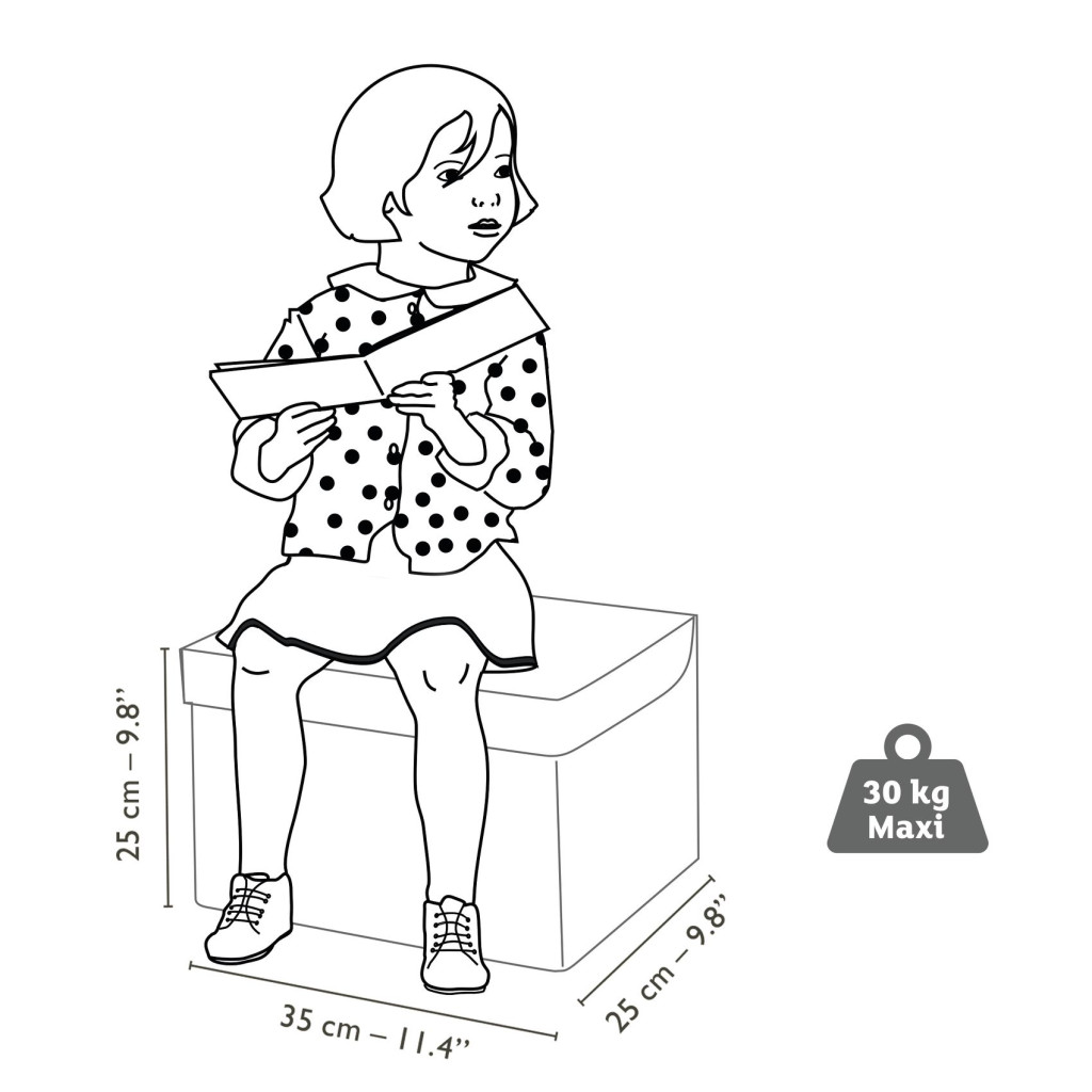 Szép dekorációs tárgy, hogy mindennek legyen helye. Fából készült szerkezetének köszönhetően szilárd, gyermek ülőkévé alakítható (max. súly: 30 kg).