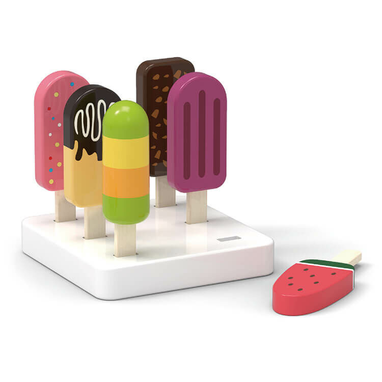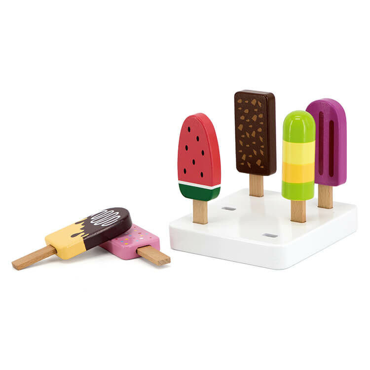 Jégkrémek állványon fából.