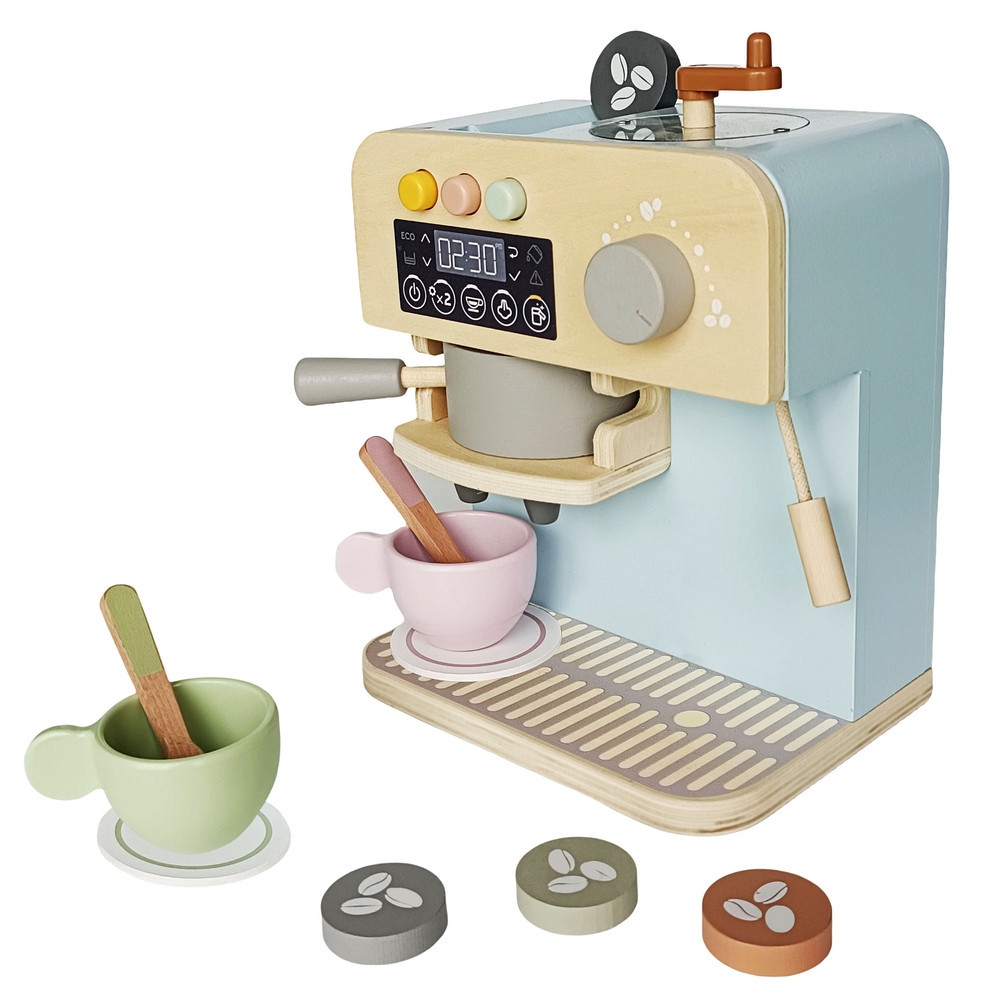A kávéfőző tartozékokkal a gyerekek eljátszhatják a „kávézós” mindennapokat: csészéket készítenek elő, kávét „főznek”, kínálnak és „felszolgálnak”. A hétköznapi rutinok utánzása játékosan fejleszti a kommunikációt, az együttműködést és a gondoskodó szerepjátékot.