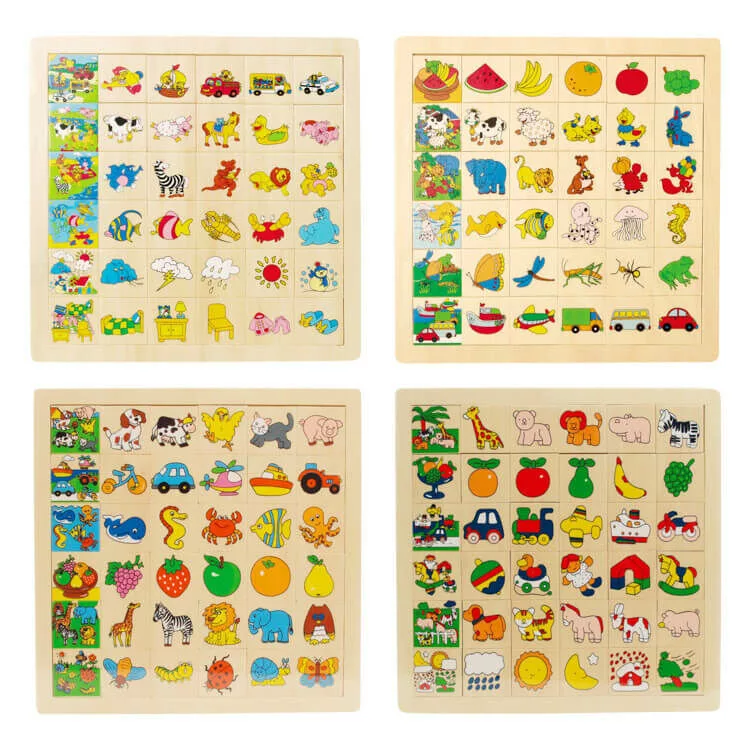 A játék lényege, hogy a sor elején található kép részleteit kell megtalálni és kirakni a hozzá tartozó sorba. Kiválóan fejleszti a memóriát, koncentrációt, a felismerő képességet. Mindezek mellett segít a színek, állatok, gyümölcsök, járművek, égitestek neveinek elsajátításában és a megfelelő csoportba való elhelyezéséhez játékos módon.
