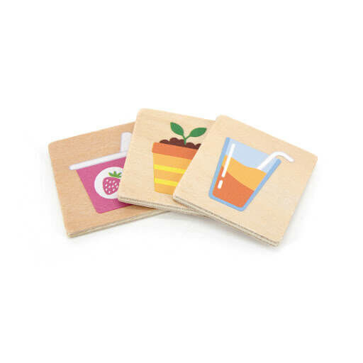 Ételek, állatok, tárgyak és napi használati cikkek várják a kicsiket a puzzle játékban.