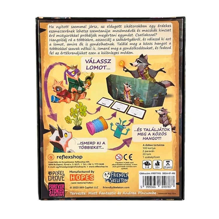 A mosómedve választ három lomot, majd szókártyákhoz párosítja őket. Két lomot a macskák is ismernek, és ki kell találniuk, hogy a 3 szókártya közül vajon melyik kettőhöz tette a lomokat a mosómedve? Ha jól sikerült a találgatás, jöhet a következő forduló, de akkor már 4 lom helyét kell megtalálni!
