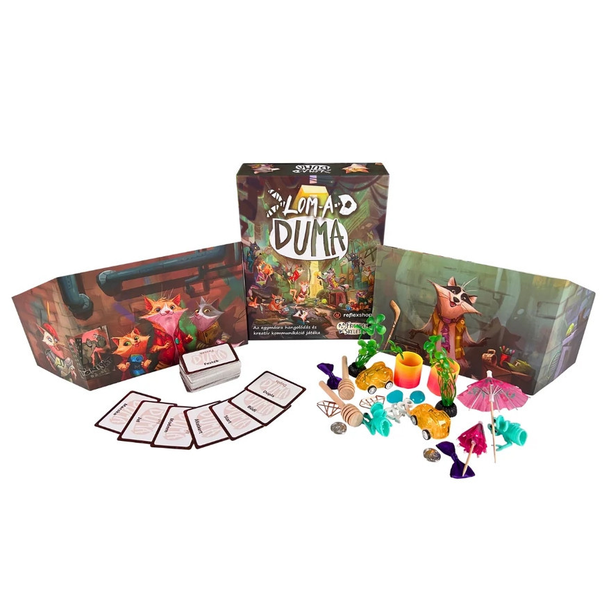 A Lom-a-duma egy kooperatív asszociációs játék, amelyben egy mosómedve és macskák próbálnak kommunikálni egymással úgy, hogy különböző lomokat párosítanak össze különböző szókártyákkal.