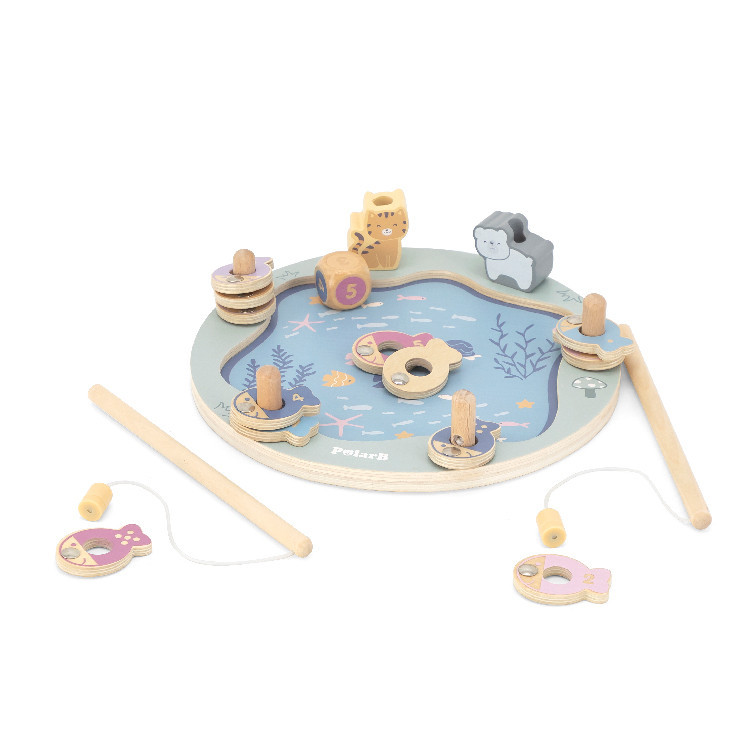 Ez a szórakoztató és izgalmas fából készült horgászjáték kiváló lehetőséget nyújt a színek megismerésére, számolási készségek, valamint a szem-kéz koordináció fejlesztésére.