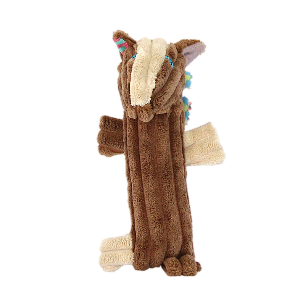 Gyermekkézbe tervezett, dédelgetni, nyomogatni, simogatni való, lovat formáló plüssjáték.