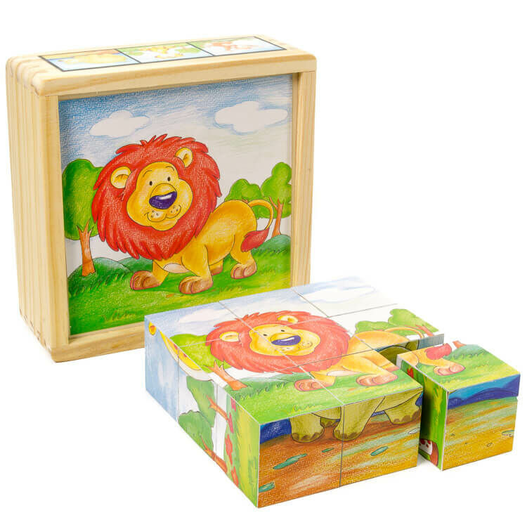 A kilenc darabból álló készlet különböző képeket ábrázol, amelyeket a gyermekek különféle módokon illeszthetnek össze, hogy újabb és újabb történeteket alkossanak. Ez a fajta játék segíti a logikai gondolkodás, a problémamegoldó készség és a kézügyesség fejlődését.