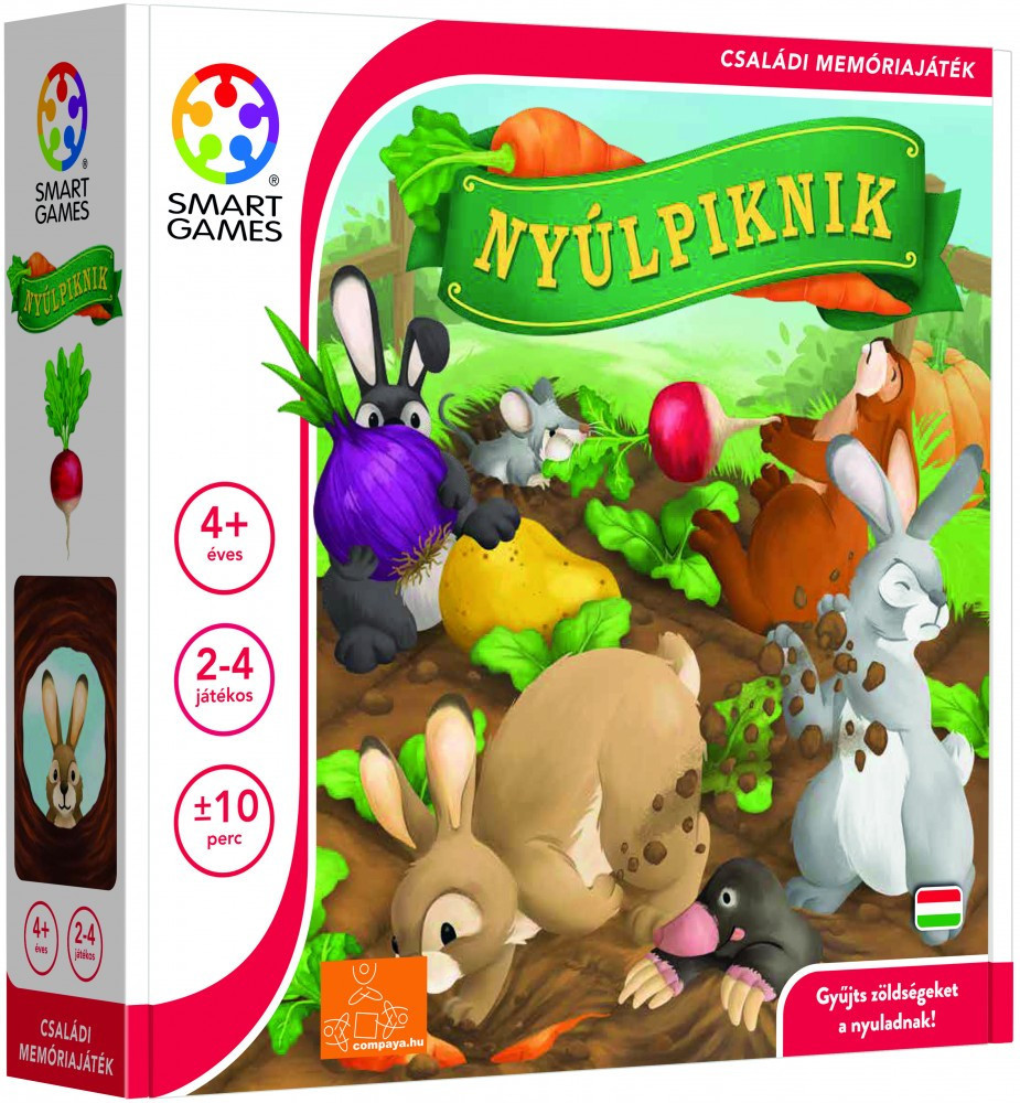 Tartalma: játéktábla, 4 nyúl, 4 gyűjtőkártya, 16 zöldségjelölő, 15 levéllapka, játékszabály.