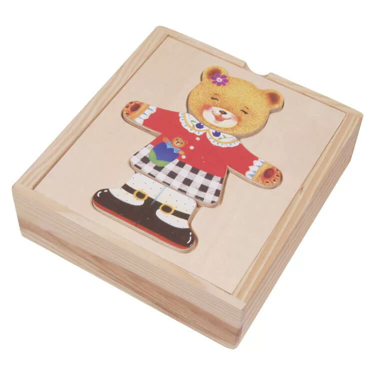 Tartalma: -6 db macifej (különböző arckifejezésekkel: vidám, szomorú stb.) -6 db felsőrész (különböző mintákkal) -6 db alsórész (különböző mintákkal) Mérete: 13 x14 x 4 cm