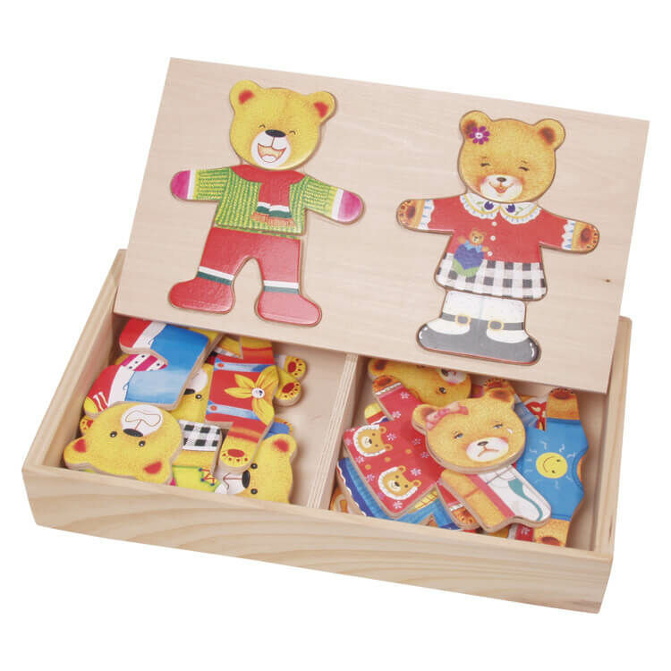 A hatféleképpen öltöztethető maci lánnyal és fiúval való játék nagyban hozzájárul a szem-kéz koordináció és a kreativitás fejlődéséhez.