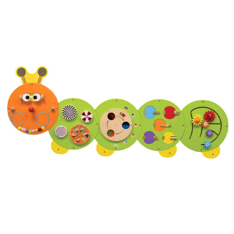 Összetett készségfejlesztő játék, matatófal (falra szerelhető, hernyó)