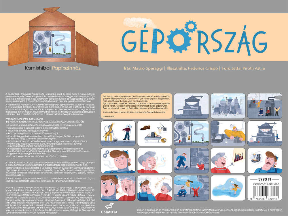 A Gépország papírszínház mese egy különleges hangulatú, elgondolkodtató történet, amely játékosan, mégis mélyebb tartalommal mutatja be a technológia és az emberi szabadság kapcsolatát.
