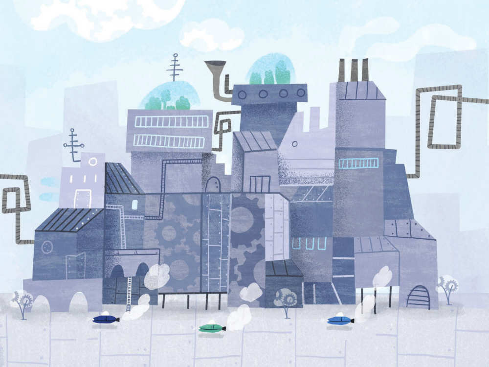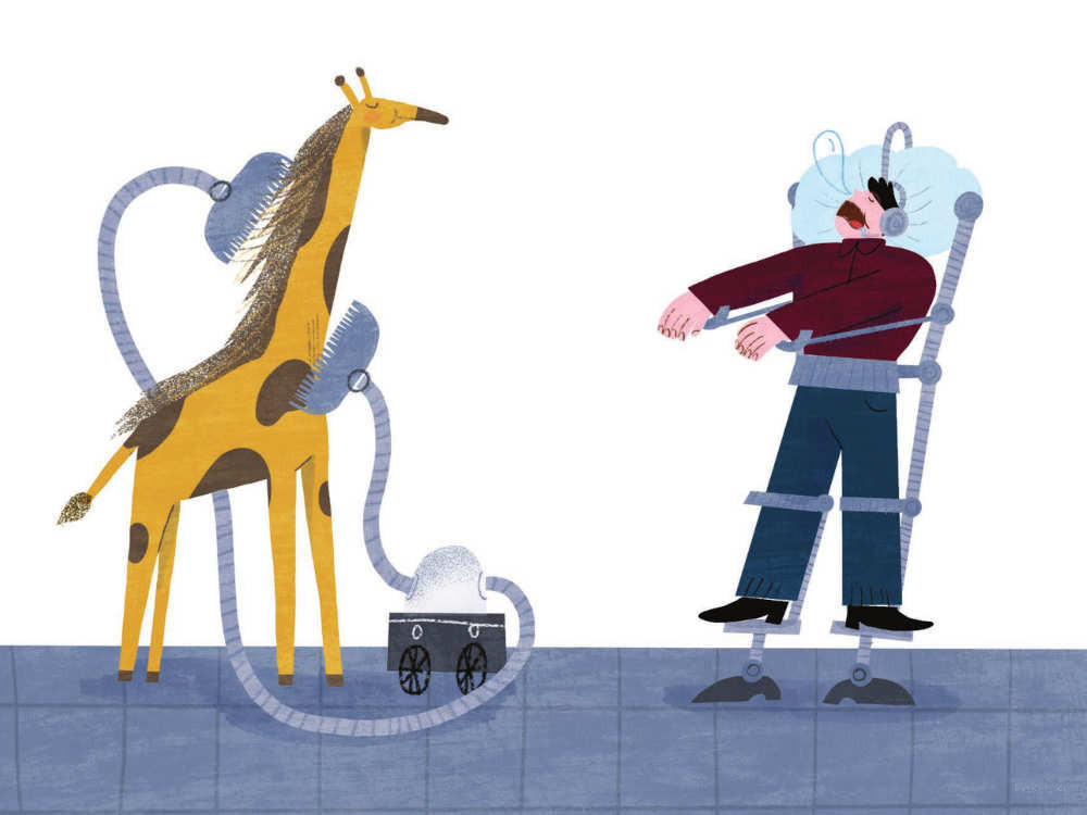 Gépország lakói eleinte gondtalanul élnek: mindenben a különféle találmányok segítik őket. A furcsábbnál furcsább szerkezetek – mint a sültgalamb-szájbaröptető, a zsiráfsörény-tupírozó vagy az időagyonütő – megkönnyítik a mindennapokat, és kényelmessé teszik az életet.