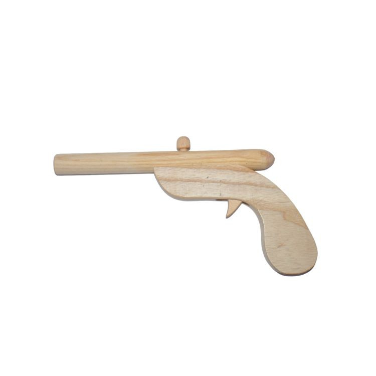 A fából készült játékpisztoly a gyerekek számára nem csak szórakoztató, de bizonságosan használható is.