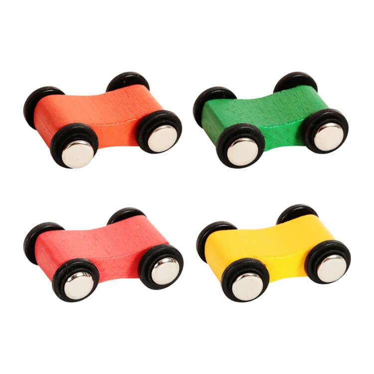 A szett tartalma 4 darab fából készült kisautó, narancssárga, zöld, piros és sárga színben. Kitűnő ajándék mindazoknak, akik már rendelkeznek az "Autók a lejtőn" játékkal. Autók a lejtőn játékhoz 4 db kisautó.