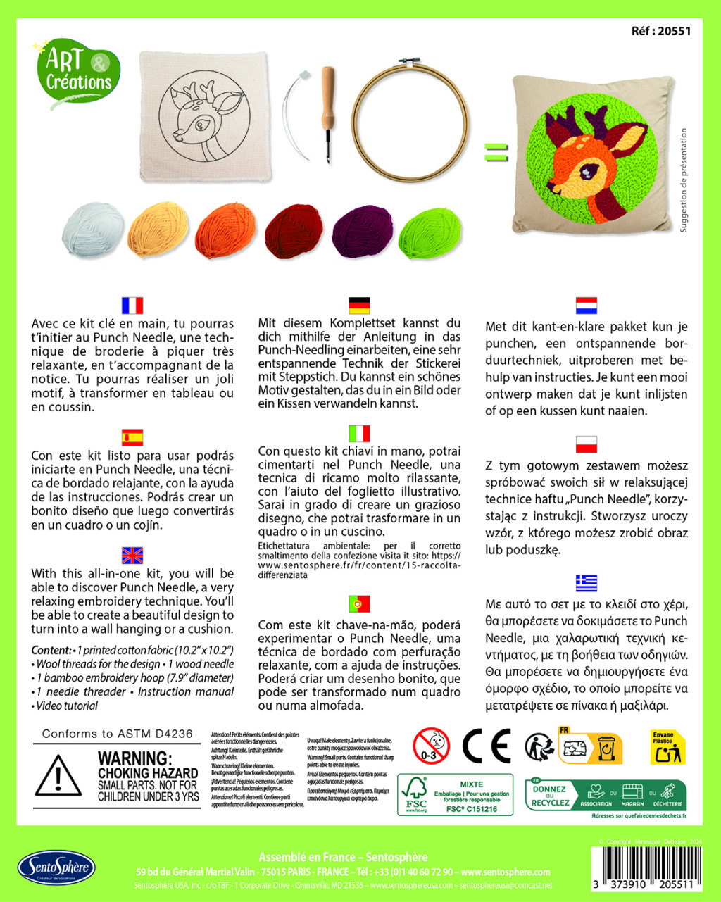 A készlet nagyszerű bevezető a népszerű Punch Needle technika világába! Ez a szórakoztató technika nagyszerű módja a stressz levezetésének, amely könnyen megtanulható a részletes útmutató segítségével. A bájos illusztrációkból képeket vagy párnákat is készíthetünk!