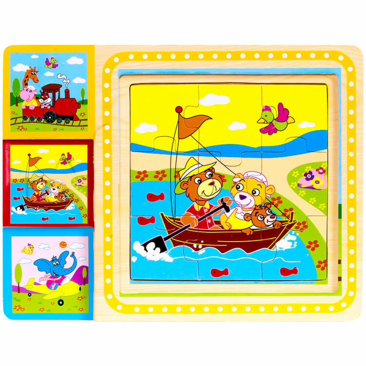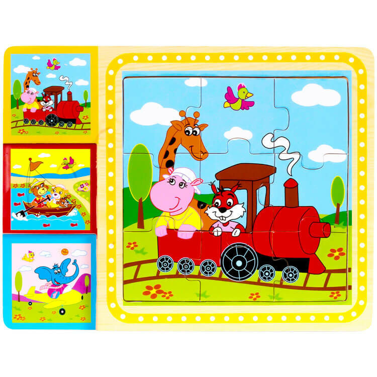3 x 9 db-os fa puzzle 3 különböző képpel.Rakd össze a képet a darabokból.