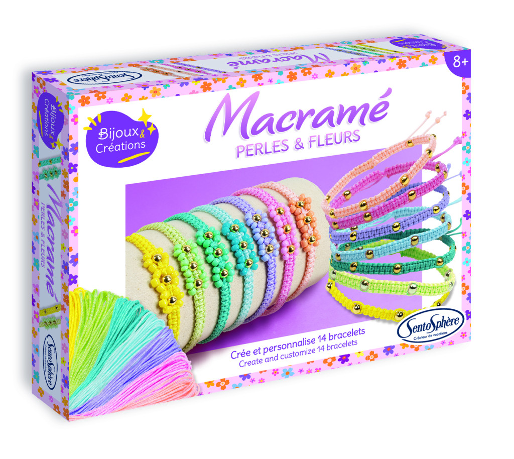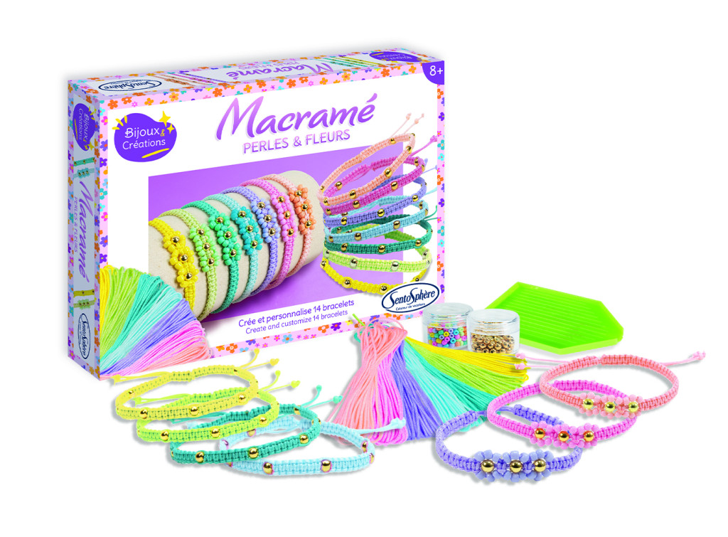 A Sentosphere kreatív készletével 14 különböző karkötő készíthető, 7 pasztel színben, az útmutatóban leírt 2 technika szerint. A gyerekek így naponta mindig más karkötőt hordhatnak, vagy elajándékozhatják a többit a barátaiknak.