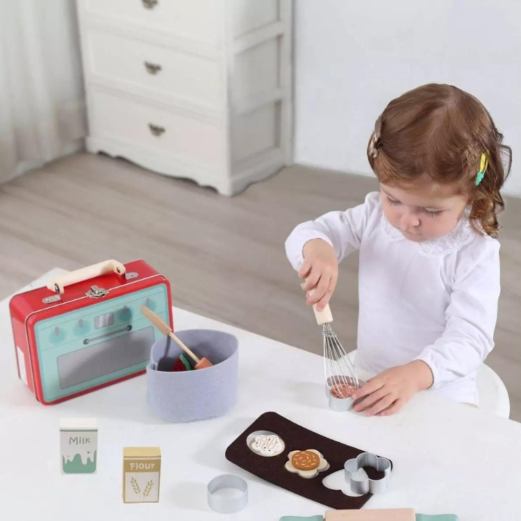Fából készült süteményes készlet fémdobozban.