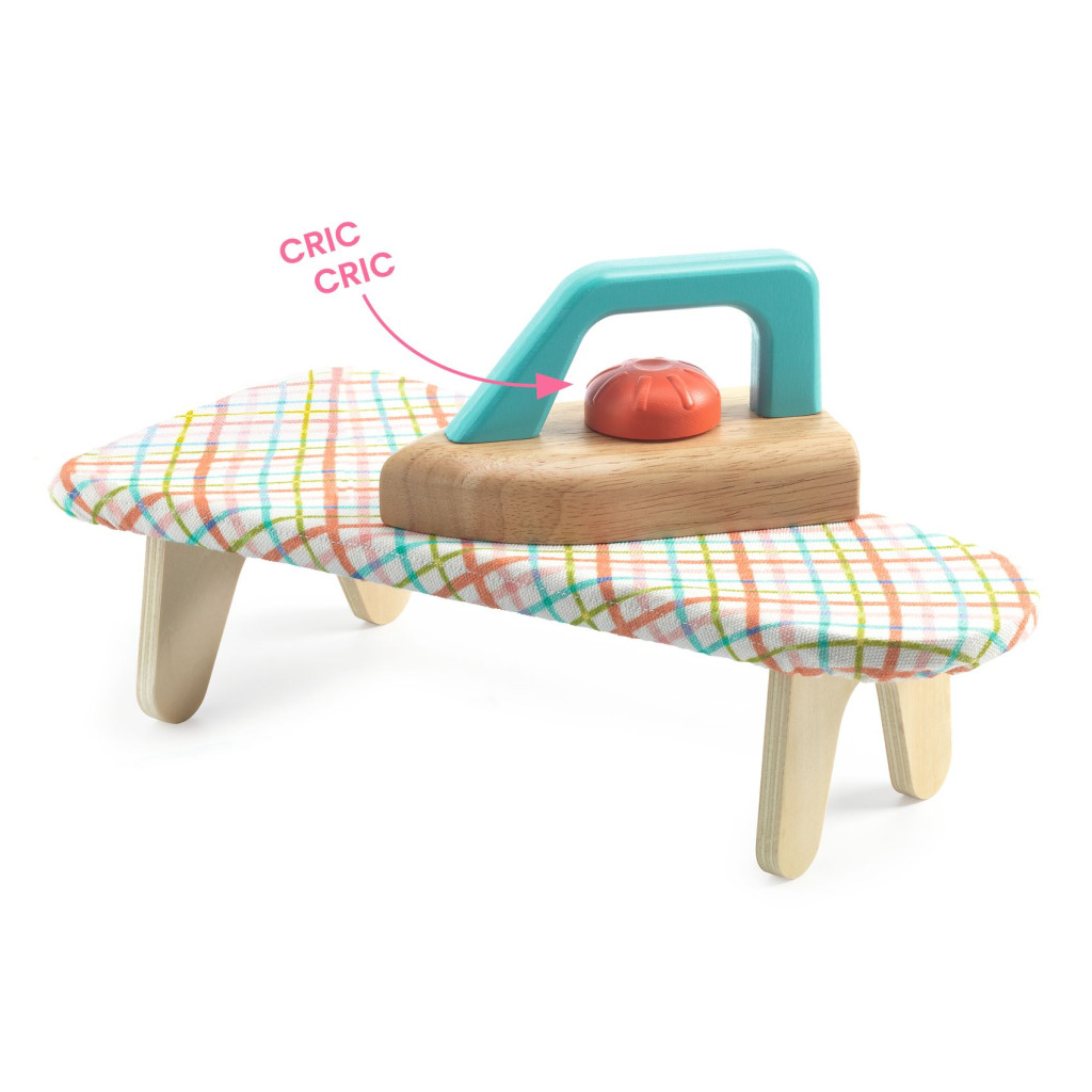 A Djeco vasalós szerepjátéka lehetővé teszi a 3 éves és annál idősebb gyermekek számára, hogy a felnőttekhez hasonlóan vasaljanak. Forgasd el a gombot a vasaló hőmérsékletének beállításához. Ezután válassz egyet az 5 ruhadarab közül, majd helyezd a vasalódeszkára! A ruhák varázsütésre kisimulnak a vasaló alatt. Valójában a ruhák anyagát úgy választották meg, hogy vasalás közben minden gyűrődés eltűnjön.