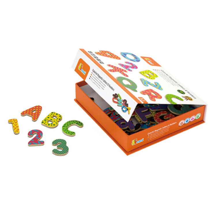 A doboz tartalma: 4 db A betű, 2 db B, 2 db C, 2 db D, 4 db E, 2 db F, 2 db G, 2 db H, 3 db I, 2 db J, 2 db K, 3 db L, 2 db M, 2 db N, 4 db O, 2 db P, 2 db Q, 2 db R, 3 db S, 3 db T, 2 db U, 2 db V, 2 db W, 2 db X, 2 db Y,2 db Z betű. A számok: 1-1 db. 1 db pluszjel, 1 db mínuszjel és 1 db egyenlőségjel.