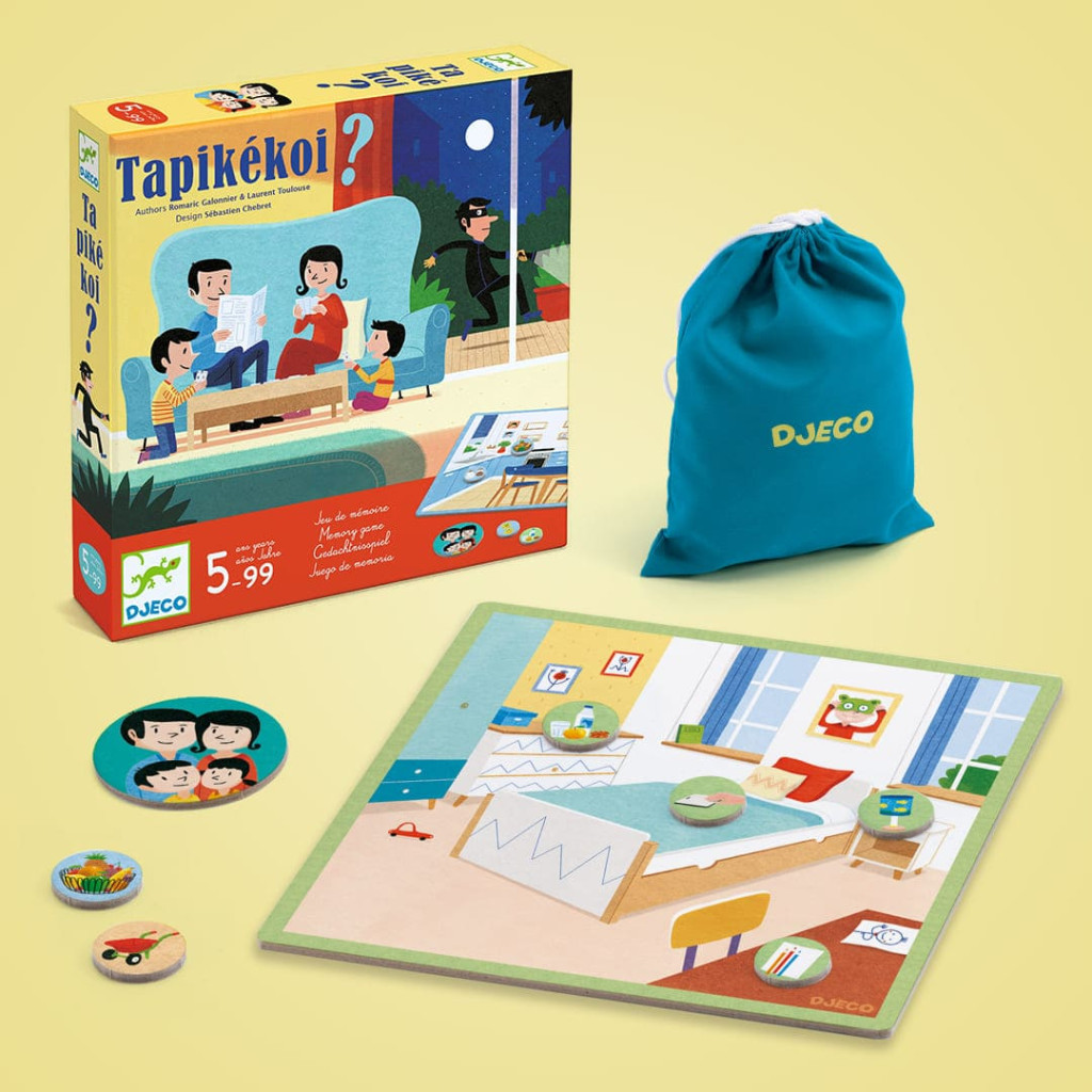 Tolvaj! Kora reggel a család felfedezi, hogy néhány gazember ellopott néhány tárgyat a házból. A játékban a győzelemhez minél több hiányzó tárgyat kell megtalálniuk a játékosoknak a hálószobában, a nappaliban, a konyhában és a kertben. Ám lehet nehezíteni a feladatot, el lehet pakolni a tárgyakat egyik szobából a másikba. A tárgyak a ház egy-egy helyiségéhez vannak kötve, de hogy nehezebb legyen megjegyezni, minden összekeverehető! Az ilusztrációk segítenek a kicsiknek azonosítani és megnevezni a házban található tárgyakat.