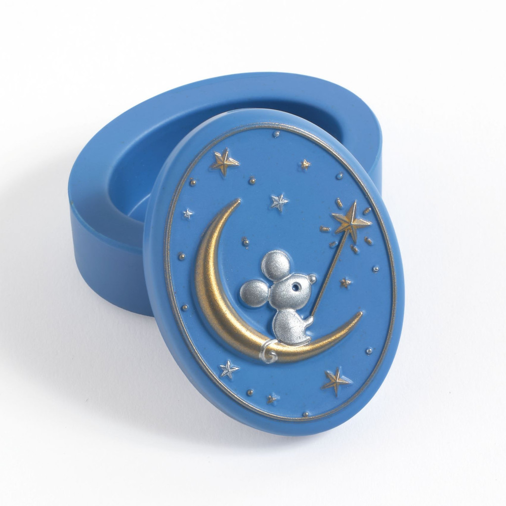 Ez a tejfogtároló doboz tökéletesen illeszkedik a gyermek szobájába. Szilikon tömítése van a doboztetőn, hogy a fedél megtapadjon és zárva maradjon. Bájos gyermekmondóka illusztrációja van a fedelén, mesés, ezüst és arany hatású csillogó színekkel. Ez a doboz tökéletesen mutat a gyermek szobájában. Olyan dekoratív, mint egy kis ékszertartó doboz. A mondókát mindenki ismeri?