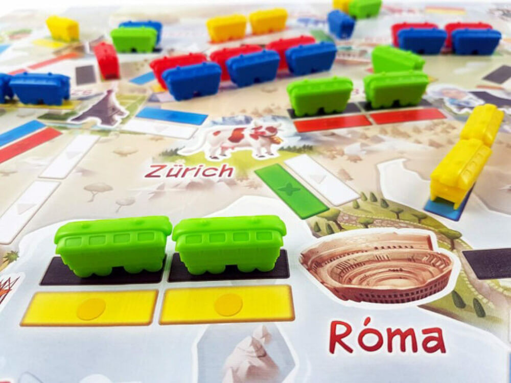 Gyűjts össze különböző színű kártyákat, a segítségükkel szerezz meg vasúti útszakaszokat a vonataiddal,