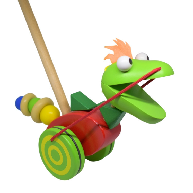 Natúr és színes, fából készült tologatós játék.
