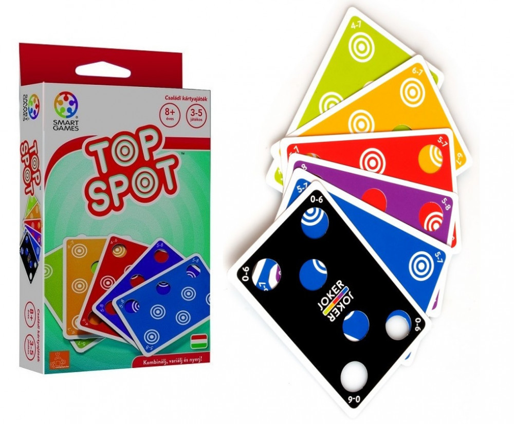 A Top Spot 5 különböző színű kártyakészletet tartalmaz, készletenként 12 kártyát.