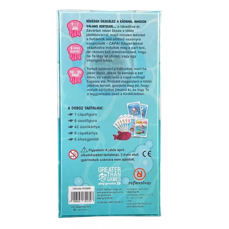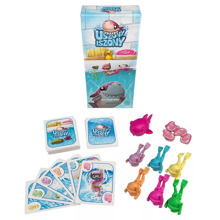 De hogyan ússz? Minden körben egy kártyát fogsz kijátszani – ha tiéd a legkisebb érték, egyből az élen találod magad. De ha bárki más is kijátszott egy ugyanolyan értékű kártyát, akkor bizony egyikőtök sem mozdul a helyéről. Maximum háromszor hibázhatsz: amint mindkét karodat és mindkét lábadat megette a cápa, végleg hallakomává lettél.