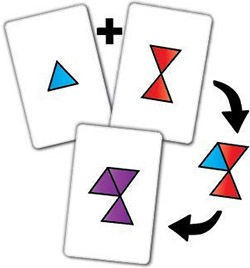 Forgasd, tükrözd és kombináld a háromszögeket úgy, hogy egy másik kártyán lévő formát hozol általuk létre.